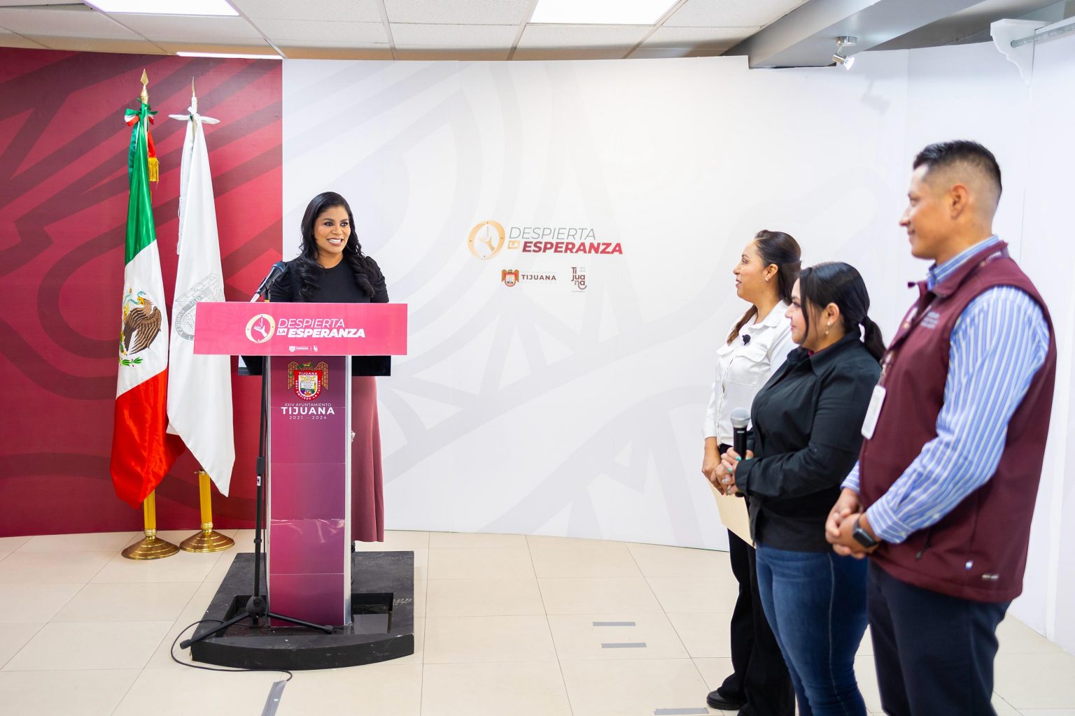 La alcaldesa agradeció a Yahaira Bustamante y a Aarón Merino su valor, primero, por salir de una situación tan difícil como una adicción y por dar su rostro y testimonio para ayudar a otras personas, y que en el caso de Aarón, ya labora en el Ayuntamiento de Tijuana como auxiliar administrativo.
