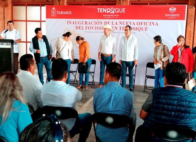 #ISSSTE.- Para dar seguimiento al objetivo de acercar los servicios a personas trabajadoras de la administración pública y facilitar su acceso a créditos hipotecarios, el Fondo de la Vivienda del Issste (Fovissste) inauguró una oficina en el municipio de Tenosique, en el estado de Tabasco.