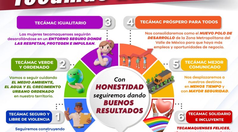 Sobre la base de un gobierno honesto y eficiente, vamos a continuar consolidando a nuestro querido Tecámac como un municipio seguro, ordenado, solidario, igualitario, próspero y responsable con el medio ambiente.