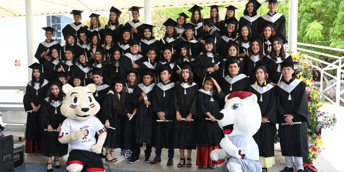 “Jóvenes, el día de hoy llevan una misión, tenemos que trabajar para cambiar este mundo, a las autoridades educativas que el día de hoy nos acompañan, agradezco su valioso apoyo y solidaridad con el CBTis 65, juntos hemos caminado en proyectos en beneficio de nuestros jóvenes”, finalizó.