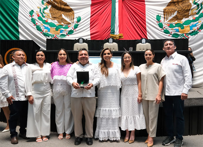 Durante la sesión solemne de la XVII Legislatura del Congreso del Estado, con la representación de los tres poderes, la gobernadora Mara Lezama Espinosa entregó la Medalla al Mérito Indígena Maya “Cecilio Chí” al ciudadano Wildernain Villegas Carrillo, por su destacada labor al intervenir como ponente y panelista de eventos que abordan temas sobre la creación literaria en lenguas originarias, identidad y enseñanza de la lengua maya y traducción literaria, galardonado con el premio internacional “Poesía del Mundo Maya”.