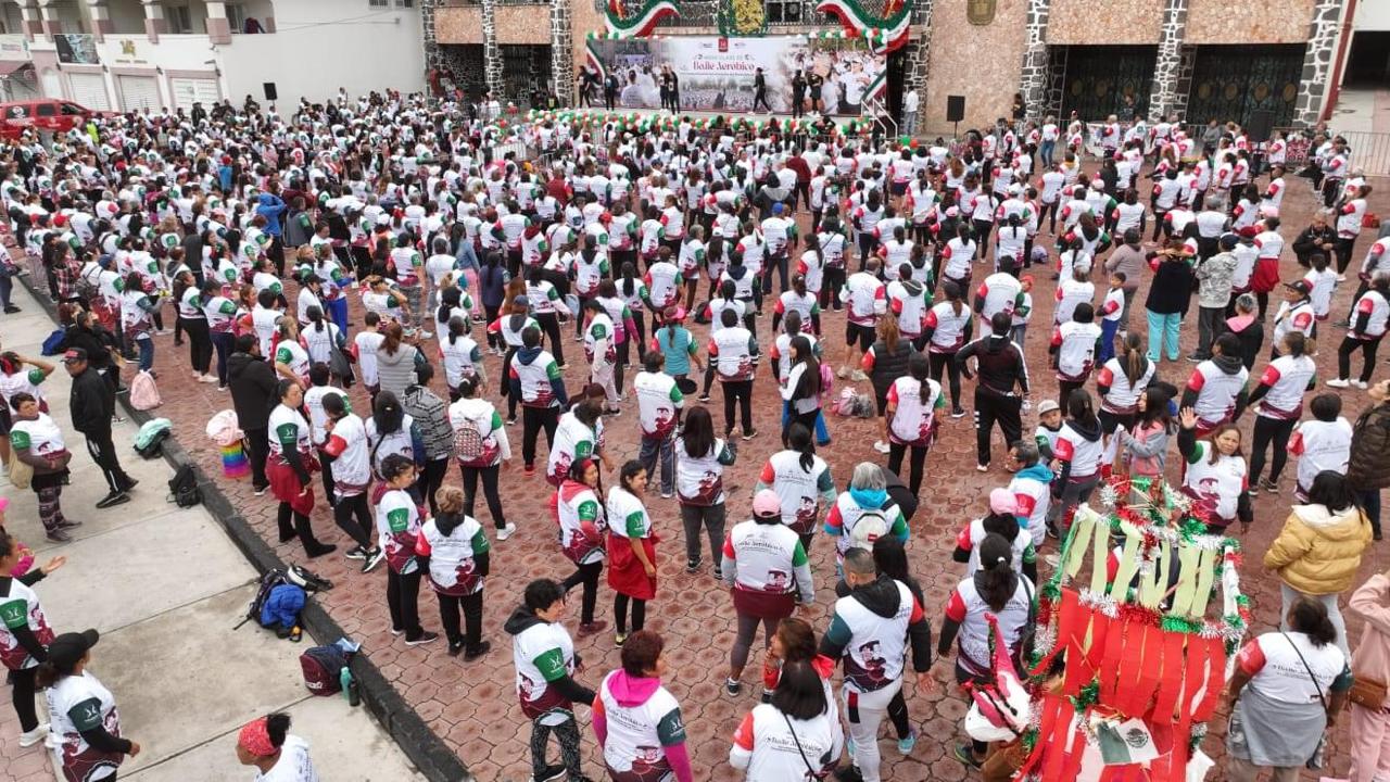 Para iniciar la celebración, la mañana de este domingo se congregaron en la explanada municipal, mil 700 personas que al ritmo de diferentes melodías realizaron su acondicionamiento físico, portando algún distintivo tricolor.