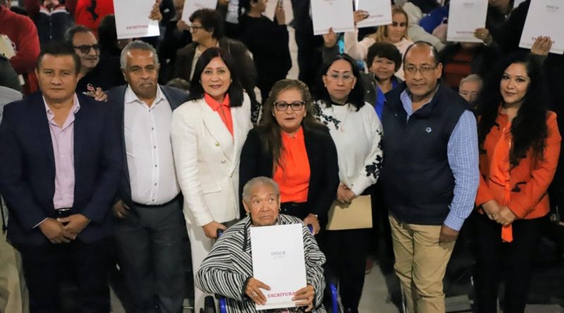 #Tecámac, #Edoméx.- La presidenta municipal, Rocío Miguel Hernández, encabezó la entrega de escrituras por parte del Instituto Nacional del Suelo Sustentable (INSUS), que benefician a 86 familias tecamaquenses de las colonias San Pedro Atzompa, Terramote y Santa Cruz.