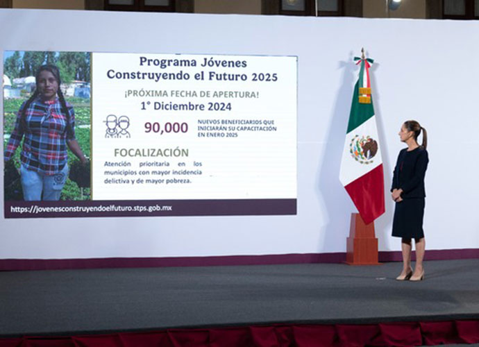 Las capacitaciones para el trabajo iniciarán en enero de 2025. Todas las personas jóvenes y las unidades económicas interesadas en participar pueden hacerlo a través de la página www.jovenesconstruyendoelfuturo.stps.gob.mx, así como de manera presencial en alguna de las oficinas móviles que se van a instalar en los municipios prioritarios.