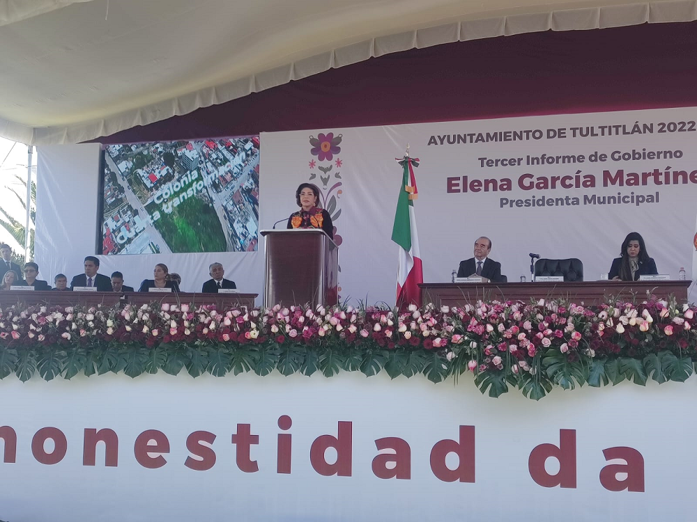#Tultitlán, #EstadoDeMéxico.- En Sesión Solemne de Ayuntamiento, la presidenta municipal, Elena García Martínez, rindió su Tercer Informe de Gobierno, en donde destacó los múltiples logros alcanzados durante su administración, «mi reconocimiento a todas y todos los ciudadanos de Tultitlán; motor que nos impulsó para dar buenos resultados, sin ellos no hubiera sido posible», puntualizó la Alcaldesa.