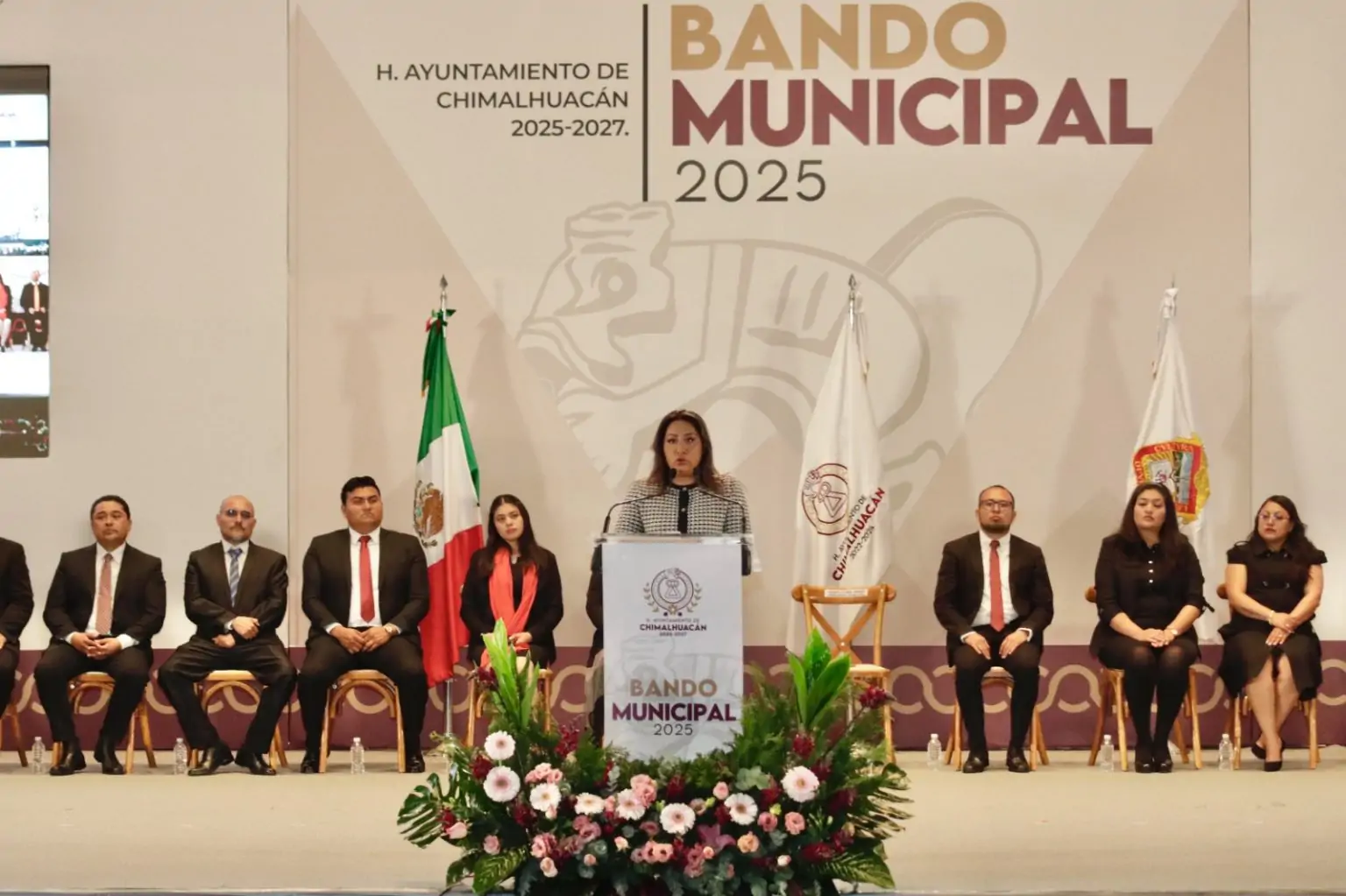 #Chimalhuacán, #Edoméx.- Mejorar la seguridad ciudadana, reforzar los mecanismos de garantización de derechos humanos, la prevención de la violencia hacia las mujeres y la implementación de juzgados cívicos, son parte de las principales reformas que presentó la presidenta municipal, Xóchitl Flores Jiménez, al promulgar el Bando Municipal de Chimalhuacán 2025.