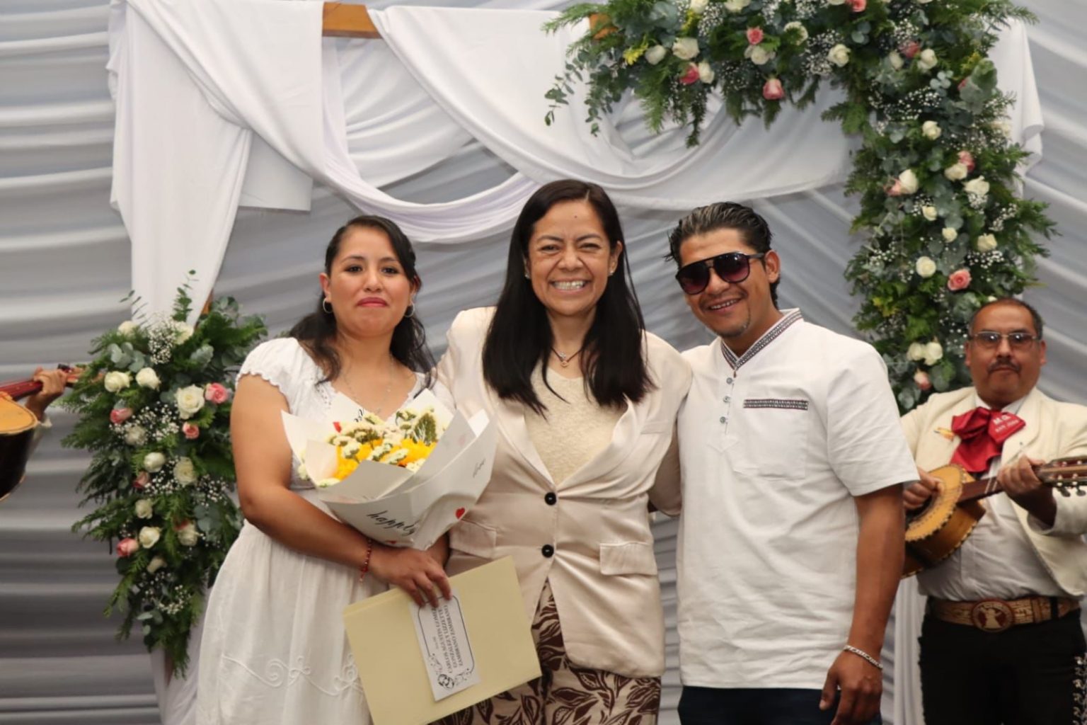 «Deseo que la felicidad y emoción que veo en sus rostros en este momento perdure para siempre”, con estas palabras, Ariadna Ayala felicitó a los contrayentes, a quienes refrendó que la base de la recomposición y consolidación del tejido social es la familia.