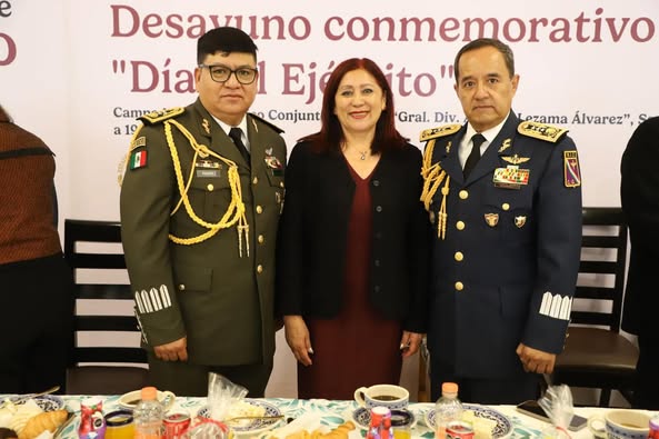 #Tecámac, #Edoméx.- La Alcaldesa de Tecámac, Rosi Wong, tuvo el honor de asistir al desayuno conmemorativo del 112° Aniversario del Ejército Mexicano, celebrado en la Base Aérea Militar de Santa Lucía. En este importante evento, se reconoció la labor invaluable de las Fuerzas Armadas en la defensa del territorio nacional, así como su compromiso con la seguridad y bienestar de la ciudadanía.