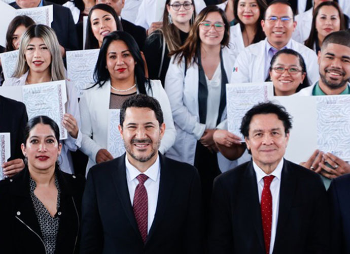 Frente a egresados de Especialidades, Subespecialidades y Alta Especialidad, docentes y familiares, Martí Batres subrayó que esta invitación se realiza en el contexto de transformación del ISSSTE, que contempla elevar los salarios de su personal médico.