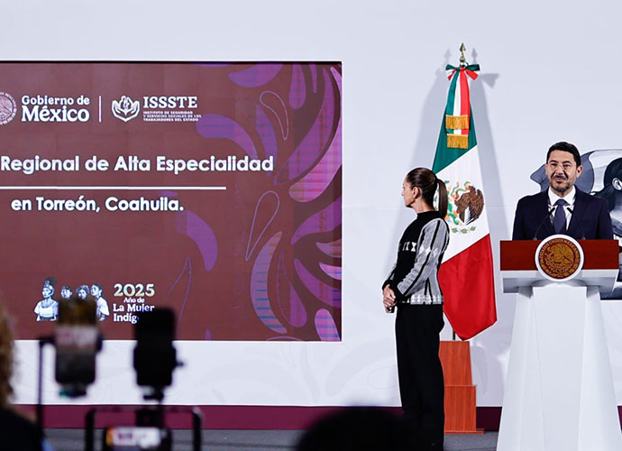 #ISSSTE.- El director general del Instituto de Seguridad y Servicios Sociales de los Trabajadores del Estado (ISSSTE), Martí Batres Guadarrama, anunció en la conferencia matutina: “La mañanera del pueblo”, de la Presidenta Claudia Sheinbaum Pardo, que en el mes de abril se inaugurará el Hospital Regional de Alta Especialidad (HRAE) del ISSSTE en Torreón, Coahuila.