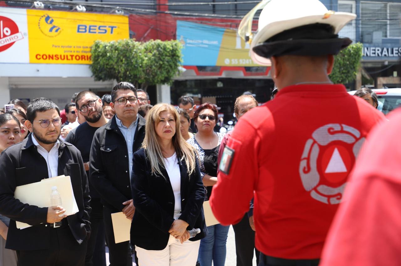 Durante el ejercicio, fueron evacuados 15 inmuebles que albergan dependencias del gobierno municipal, con la participación activa de 1,677 personas, quienes respondieron al llamado de manera ordenada y eficaz, logrando un tiempo de evacuación de 1 minuto con 30 segundos.