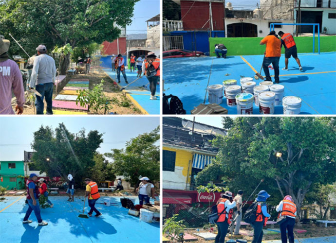 #Acapulco, #Gro.- Personal de diversas áreas operativas del Honorable Ayuntamiento de Acapulco se unió para llevar a cabo la rehabilitación del parque público ubicado en la colonia Libertadores. Esta iniciativa forma parte del compromiso del gobierno municipal por rescatar y mejorar los espacios públicos que fomentan la convivencia y el bienestar social de las comunidades acapulqueñas.