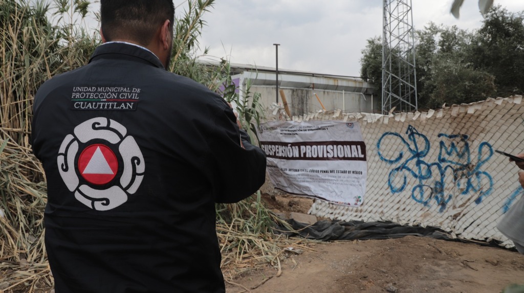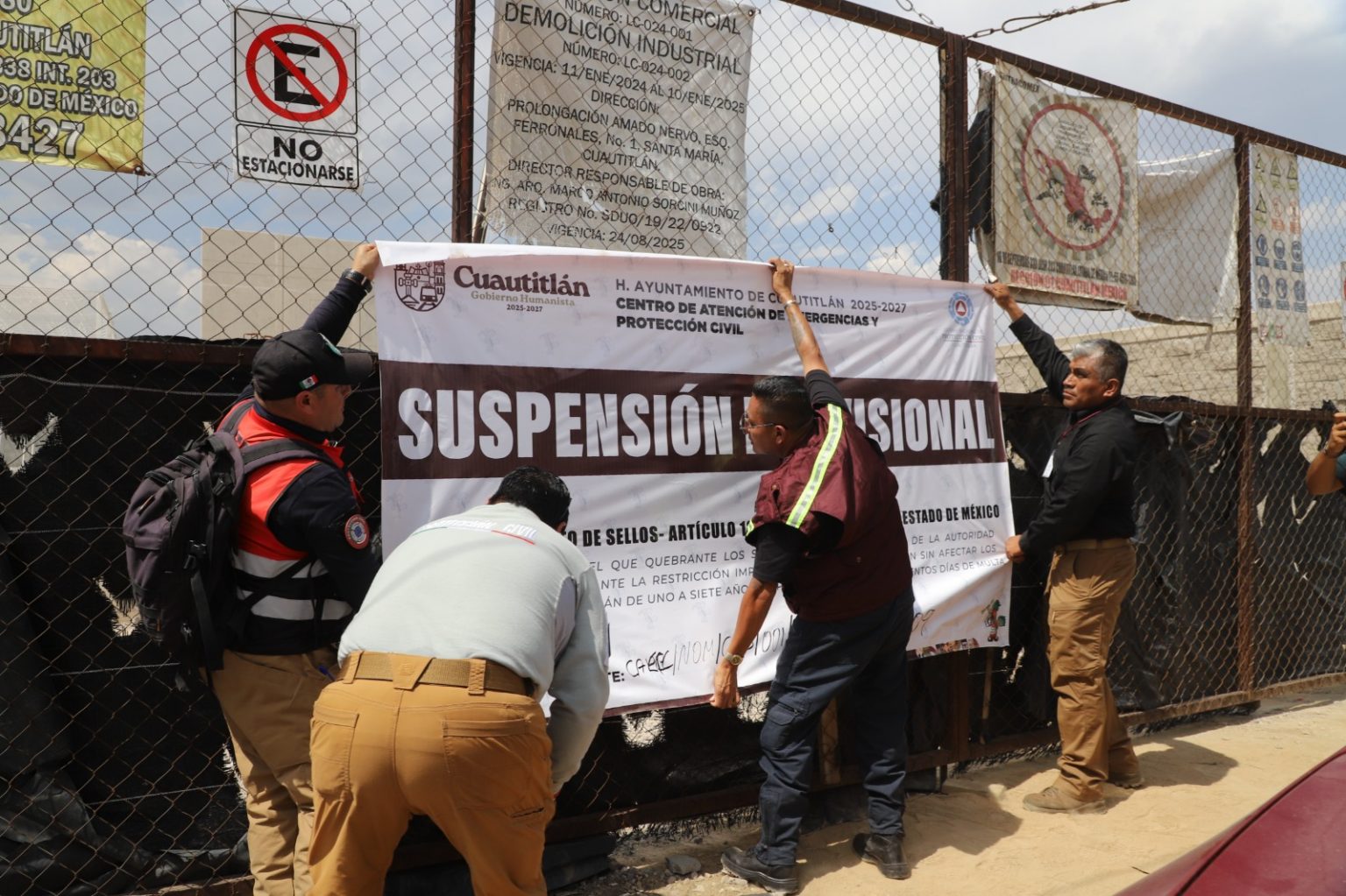 En seguimiento a denuncias ciudadanas y a una revisión directa de la zona, el Gobierno Municipal de Cuautitlán, encabezado por la presidenta Juanita Carrillo y a través d ela coordinación de protección civil y bomberos procedió este martes a la colocación de sellos de suspensión en una obra ubicada a un costado del Tren Suburbano, debido al incumplimiento de medidas de seguridad y normativas municipales.