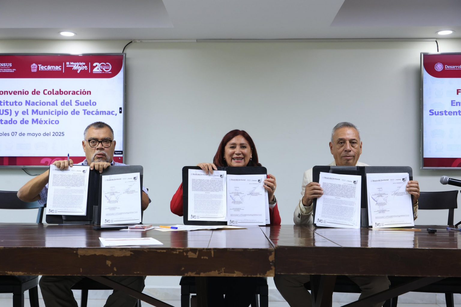 #Tecámac, #Edoméx.- La alcaldesa Rosi Wong encabezó la firma de un importante convenio de colaboración con el Instituto Nacional del Suelo Sustentable (INSUS), en un acto que refleja su compromiso con el bienestar y la seguridad patrimonial de las familias tecamaquenses. Este acuerdo tiene como objetivo principal brindar certeza jurídica a miles de ciudadanos que por años han esperado una solución concreta para regularizar su situación territorial.