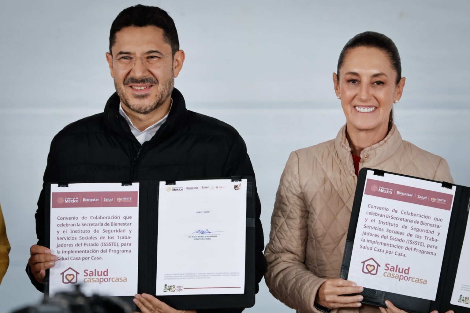 #ISSSTE.- “Nos da gusto decir que el ISSSTE se suma, y precisamente el día de hoy el ISSSTE formaliza todo su apoyo institucional para este gran programa de prevención y promoción de la salud desde los hogares de nuestra patria”, destacó.