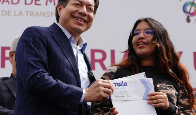 #SEP.- Al participar en representación de la Presidenta Claudia Sheinbaum Pardo, en la entrega de 10 mil Becas a universitarias y universitarios para transporte y más 2025, otorgadas por el Gobierno de la Ciudad de México, el secretario de Educación Pública, Mario Delgado Carrillo, destacó que a nivel federal opera el programa social más grande del país, Becas para el Bienestar, con 13 millones de beneficiarios. Además, informó que este año se destinarán 25 mil millones de pesos al programa La Escuela es Nuestra (LEEN) para la rehabilitación de planteles de Educación Básica y, por primera vez, de Educación Media Superior.
