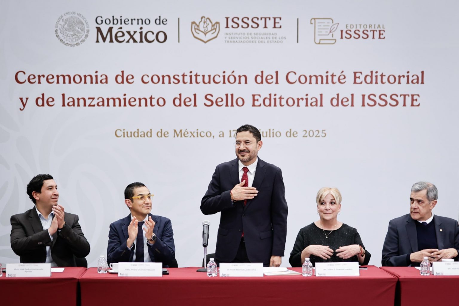 #ISSSTE.- El director general del Instituto de Seguridad y Servicios Sociales de los Trabajadores del Estado (ISSSTE), Martí Batres Guadarrama, encabezó la Ceremonia de constitución del comité editorial y de lanzamiento del sello editorial del organismo, donde destacó que este tendrá la finalidad de difundir investigaciones en el campo de la salud, seguridad social, economía, Estado de Bienestar, entre otros temas.