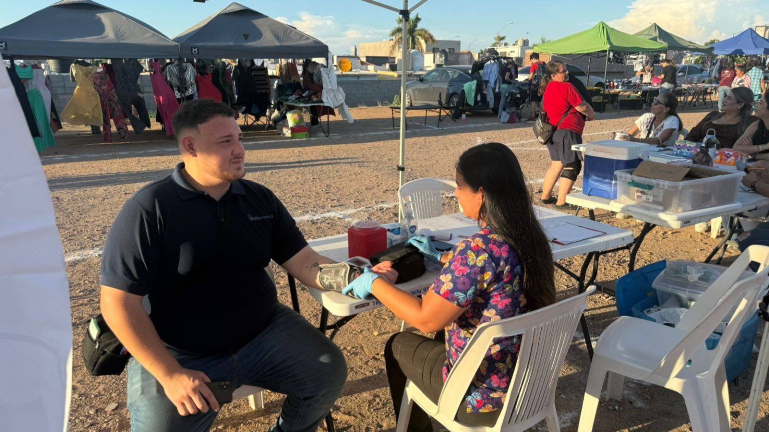 La jornada se realizó en el tianguis de Guaymas Norte, espacio en el que se brindaron consultas médicas y nutricionales, entrega de medicamentos a través de la farmacia, vacunación y desparasitación para perros y gatos, además de detección de hipertensión y diabetes.