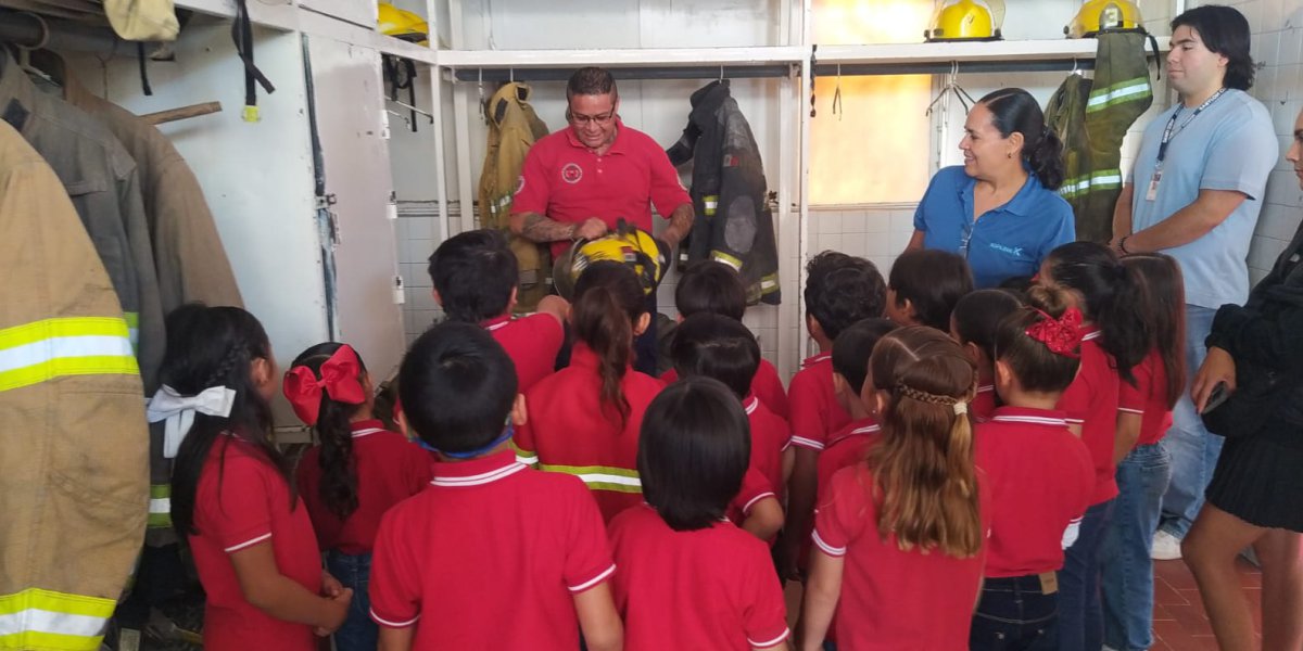 En está ocasión, alumnos de nivel preescolar del Instituto Kipling Irapuato conocieron el cuartel de bomberos, ingresaron a la cabina de radio donde se reciben los reportes ciudadanos, conocieron y portaron el equipo de protección del personal traga-fuegos, así como los protocolos que aplican al momento de atender una emergencia Claudia Hernández, profesora de la institución educativa expresó que, la visita complementa los conocimientos educativos de las y los niños, porque observan el trabajo en equipo y la buena coordinación que el personal de bomberos debe tener para atender emergencias de la ciudadanía.