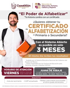 Para formalizar la inscripción al programa, se requiere presentar la acta de nacimiento, la CURP actualizada y la boleta o documento que acredite el último grado de estudios cursado. Con la implementación de «El Poder de Alfabetizar», el Gobierno de Cuautitlán subraya su convicción de impulsar una educación accesible, digna y transformadora. La administración de Juanita Carrillo sostiene el principio ineludible de que aprender es un derecho fundamental que no debe estar limitado por la edad.