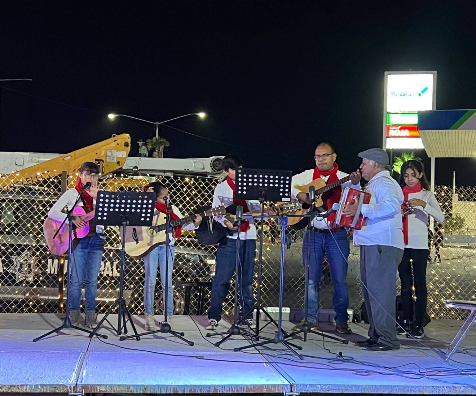 El programa artístico incluyó la destacada presentación del grupo de música de la Casa de la Cultura, cuyas interpretaciones llenaron el escenario de armonía y espíritu navideño. A ello se sumó la energía y el entusiasmo de los jóvenes integrantes de la batucada del Cet del Mar, quienes aportaron ritmo y alegría al evento, despertando aplausos entre el público asistente.